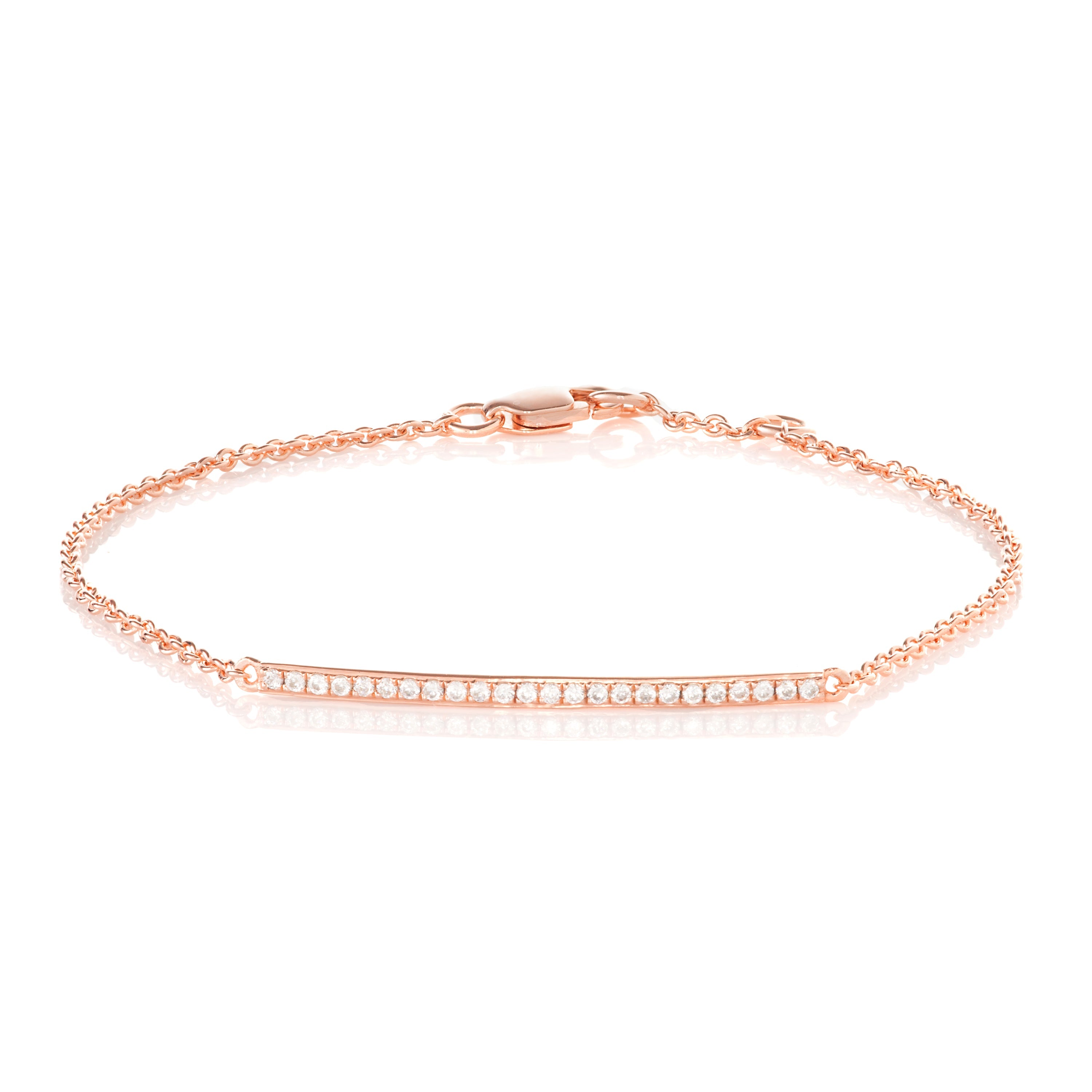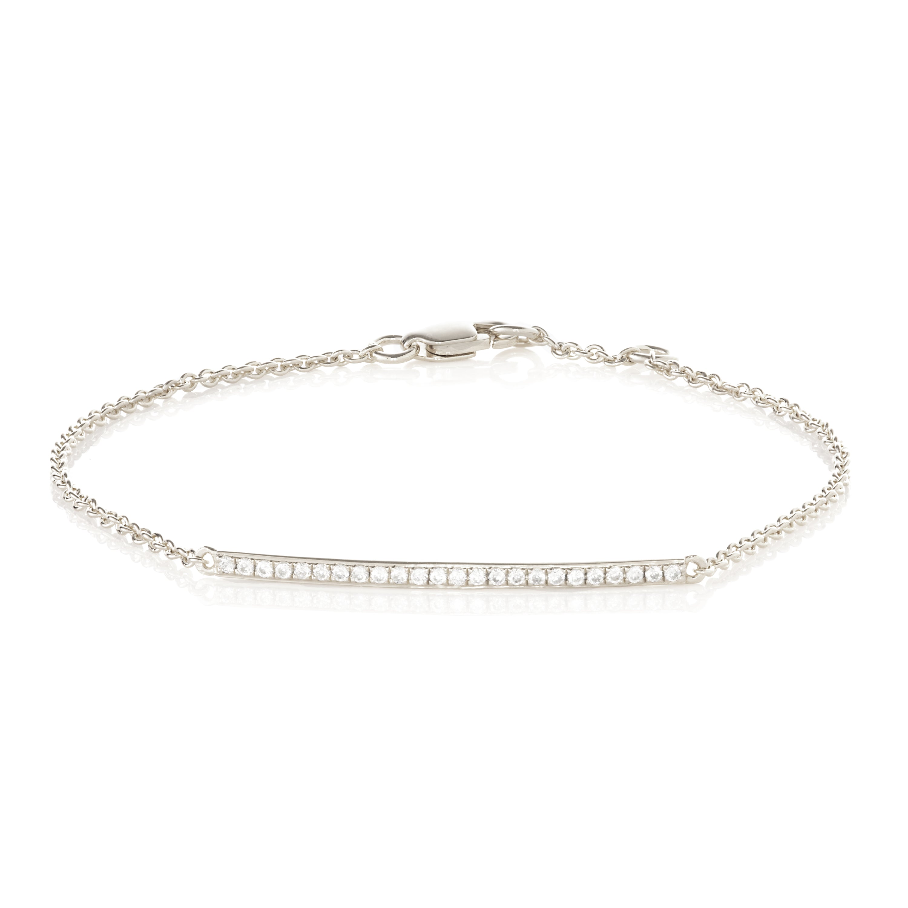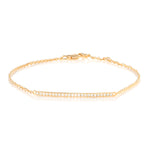 Fine pave diamond bar on fine chain with clasp and jump ring fastening.