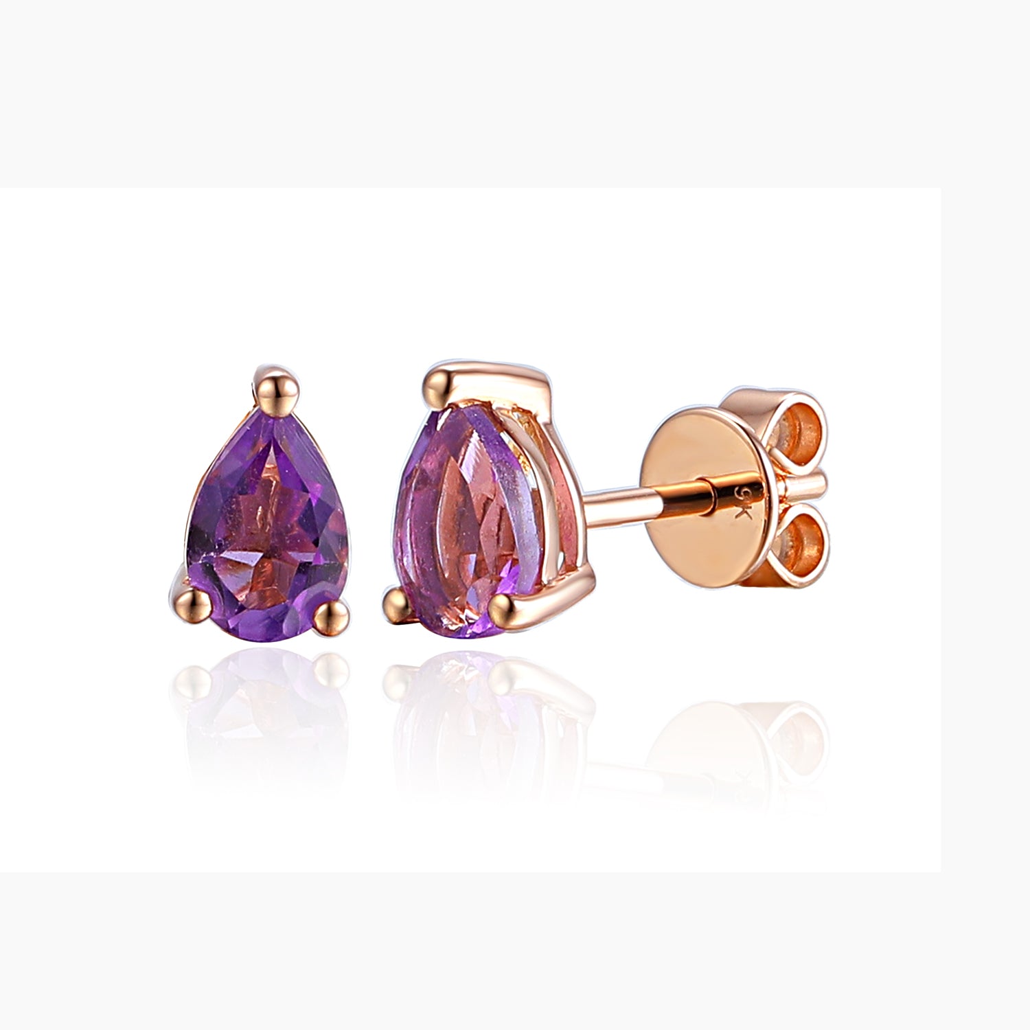 Pear shape gemstone earrings set into three claw gold setting