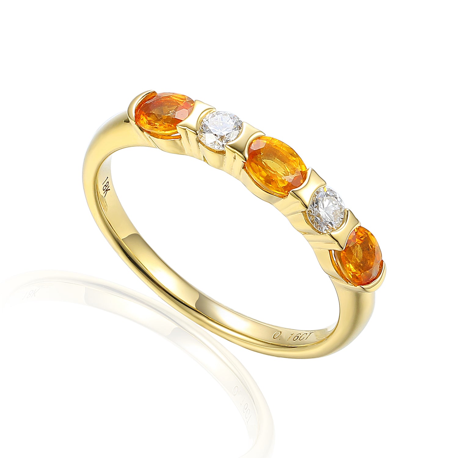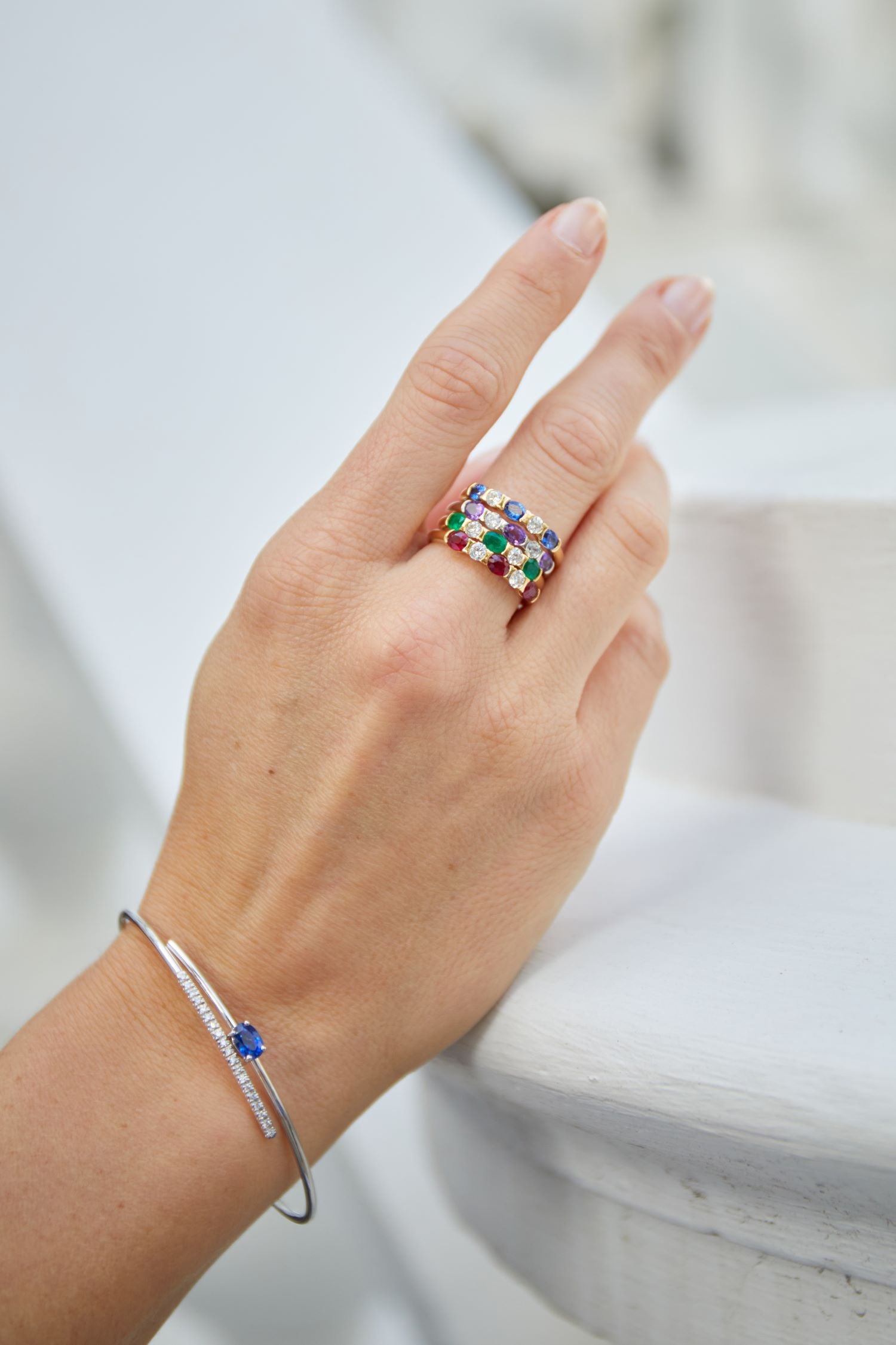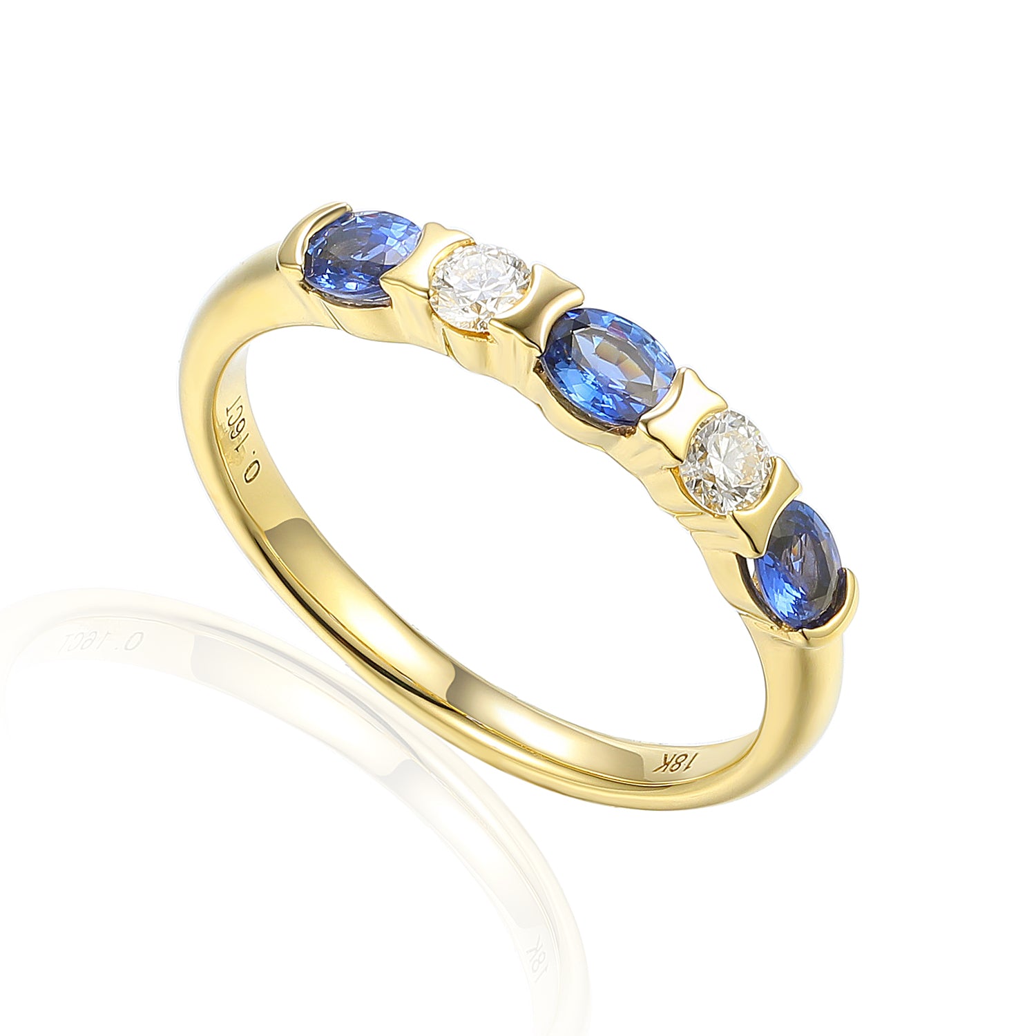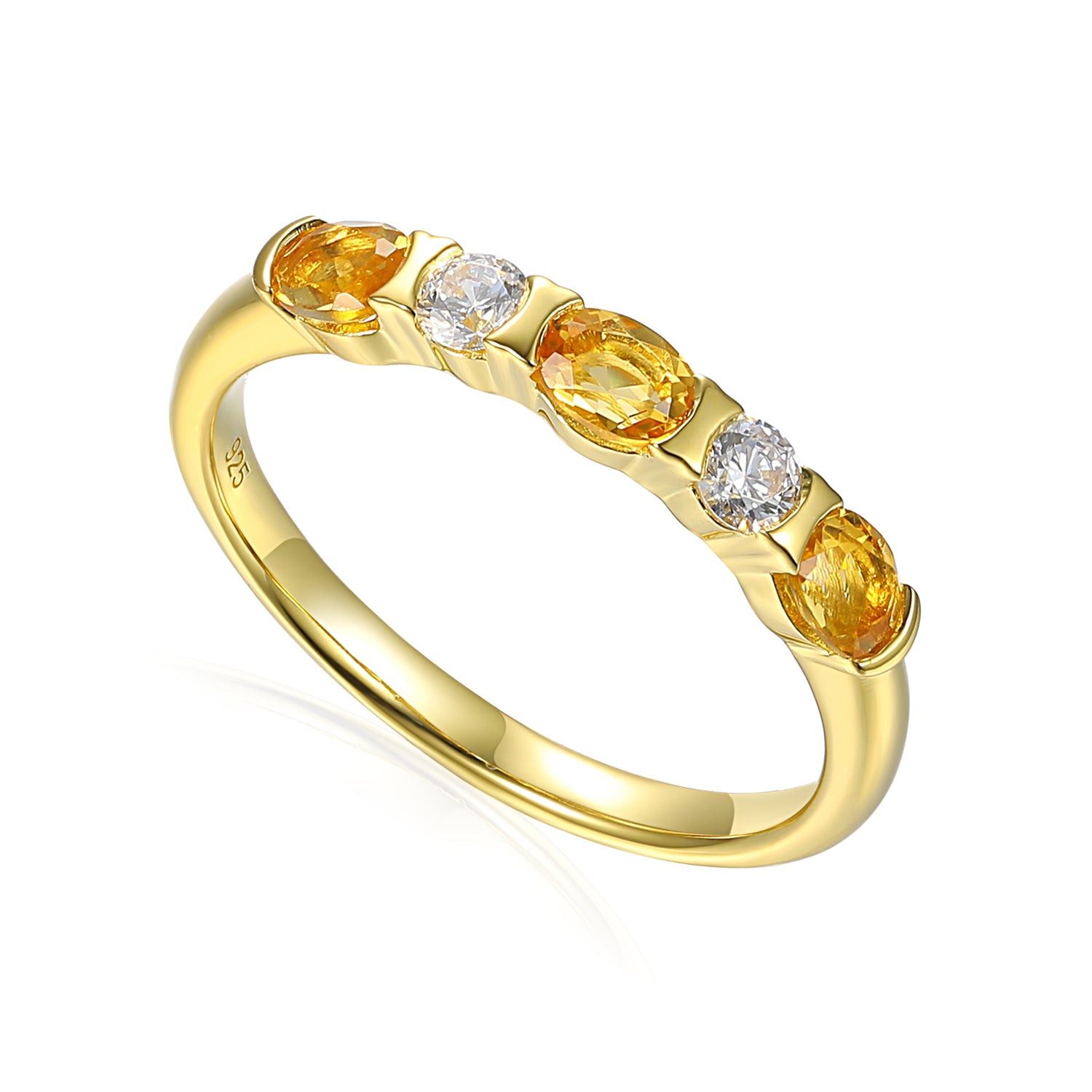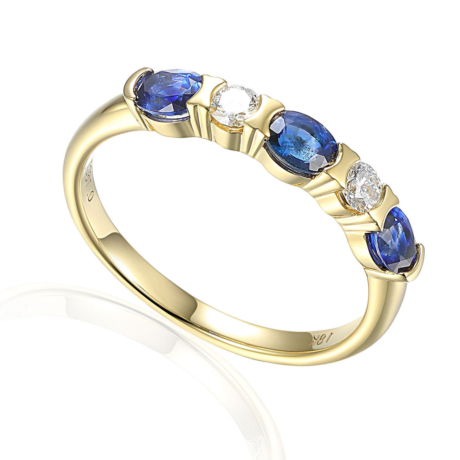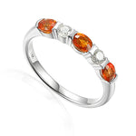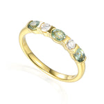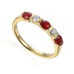 Five stone half eternity ring with three oval gemstones and two diamonds half rubover