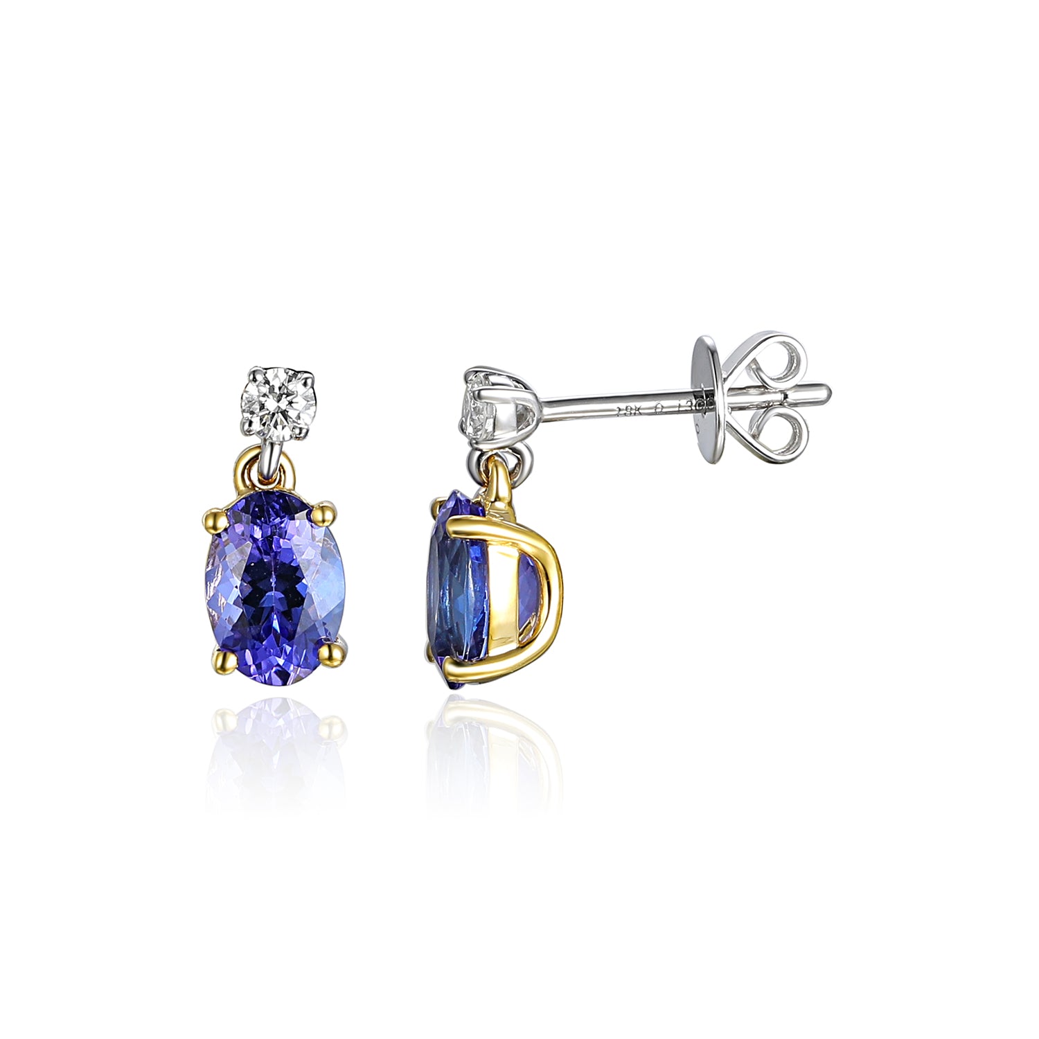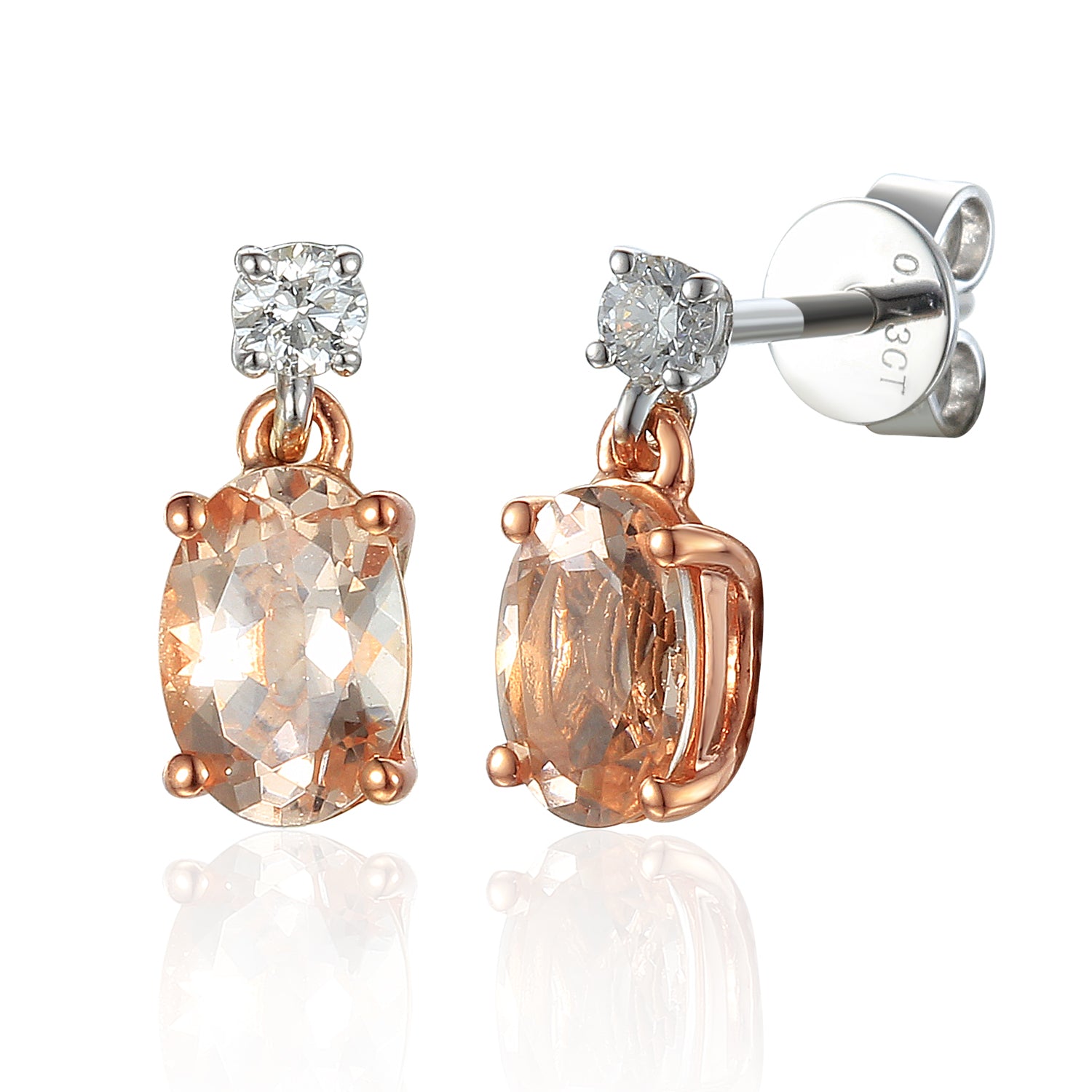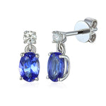 Oval gemstone earrings 7x5mm centre stone and diamond top on post and butterfly