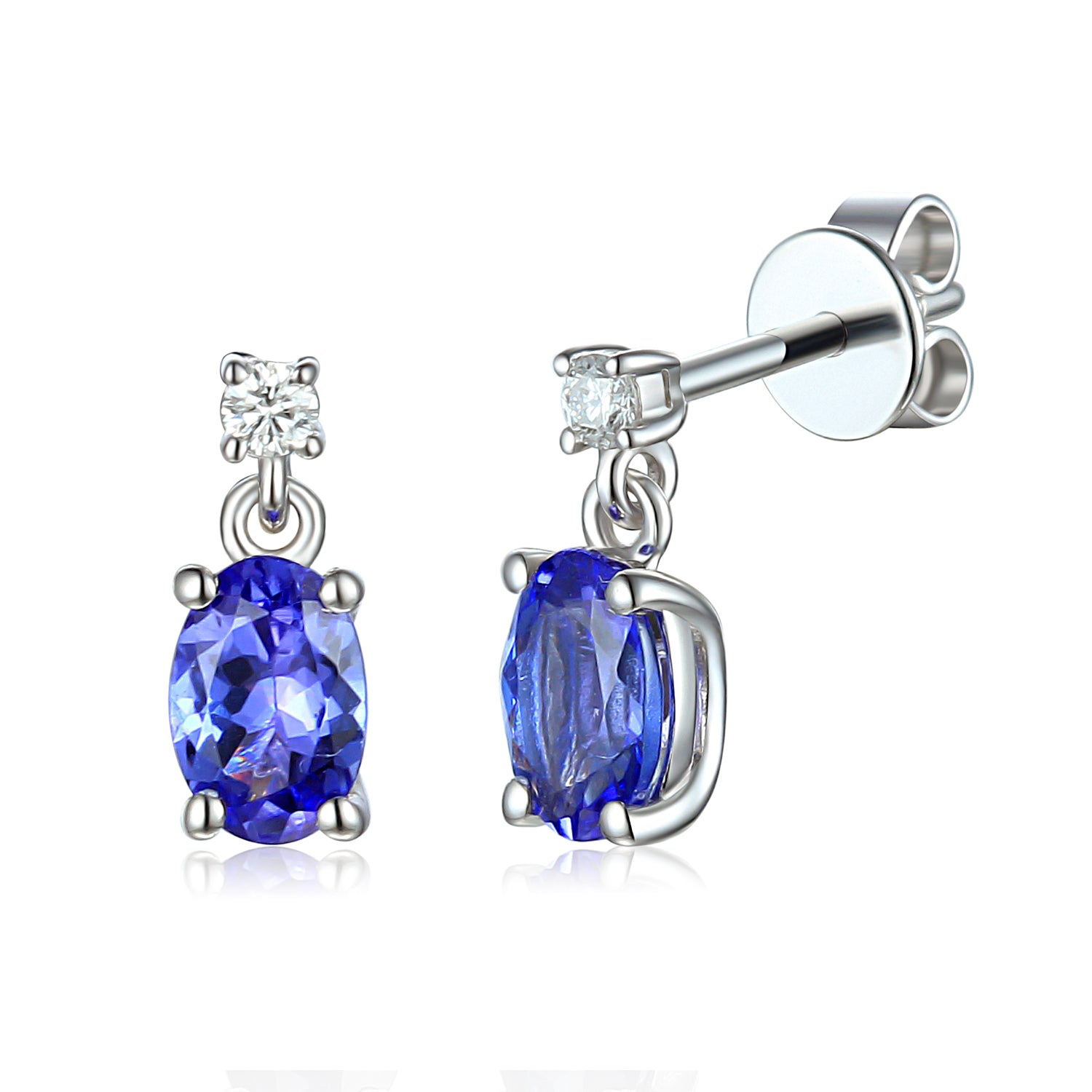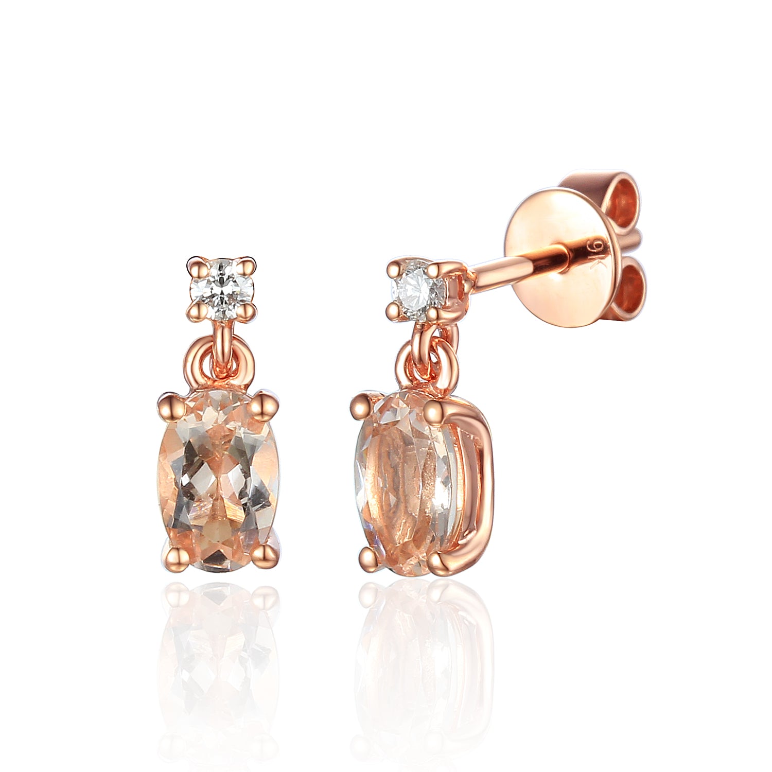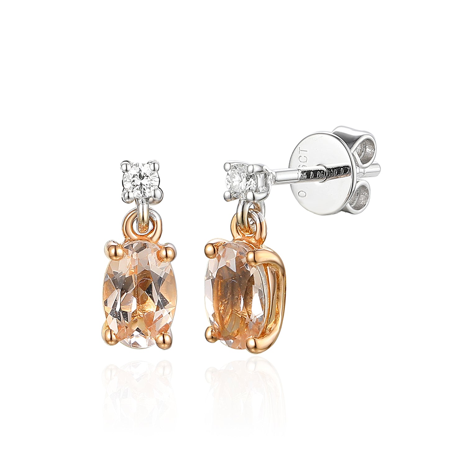 Oval gemstone set in four claw earring setting with diamond claw set top and post and butterfly fastening.