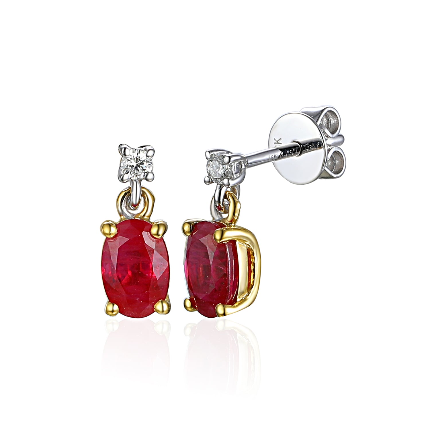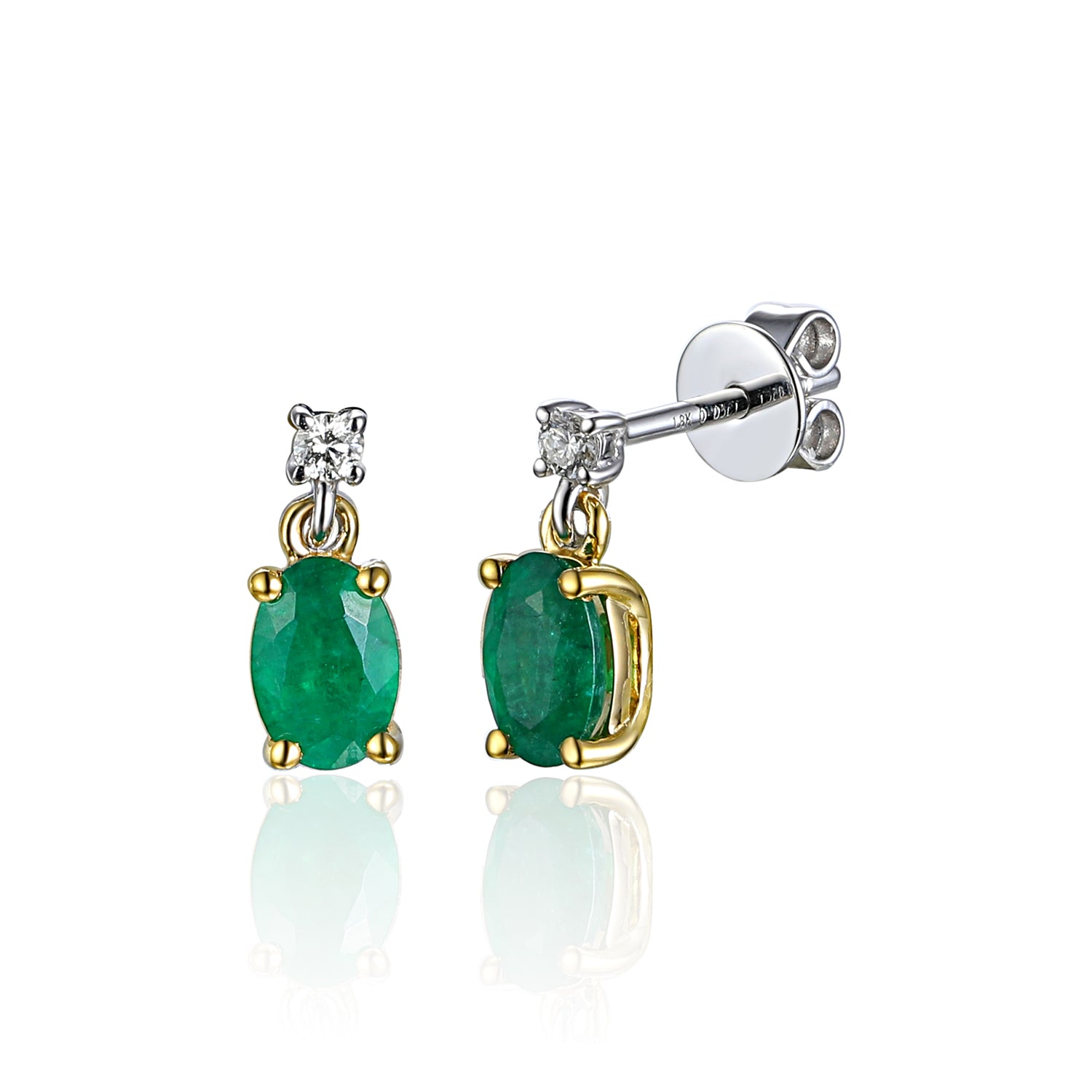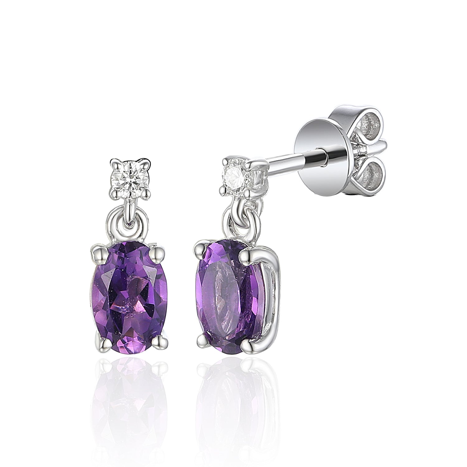 Oval gemstone set in four claw earring setting with diamond claw set top and post and butterfly fastening.