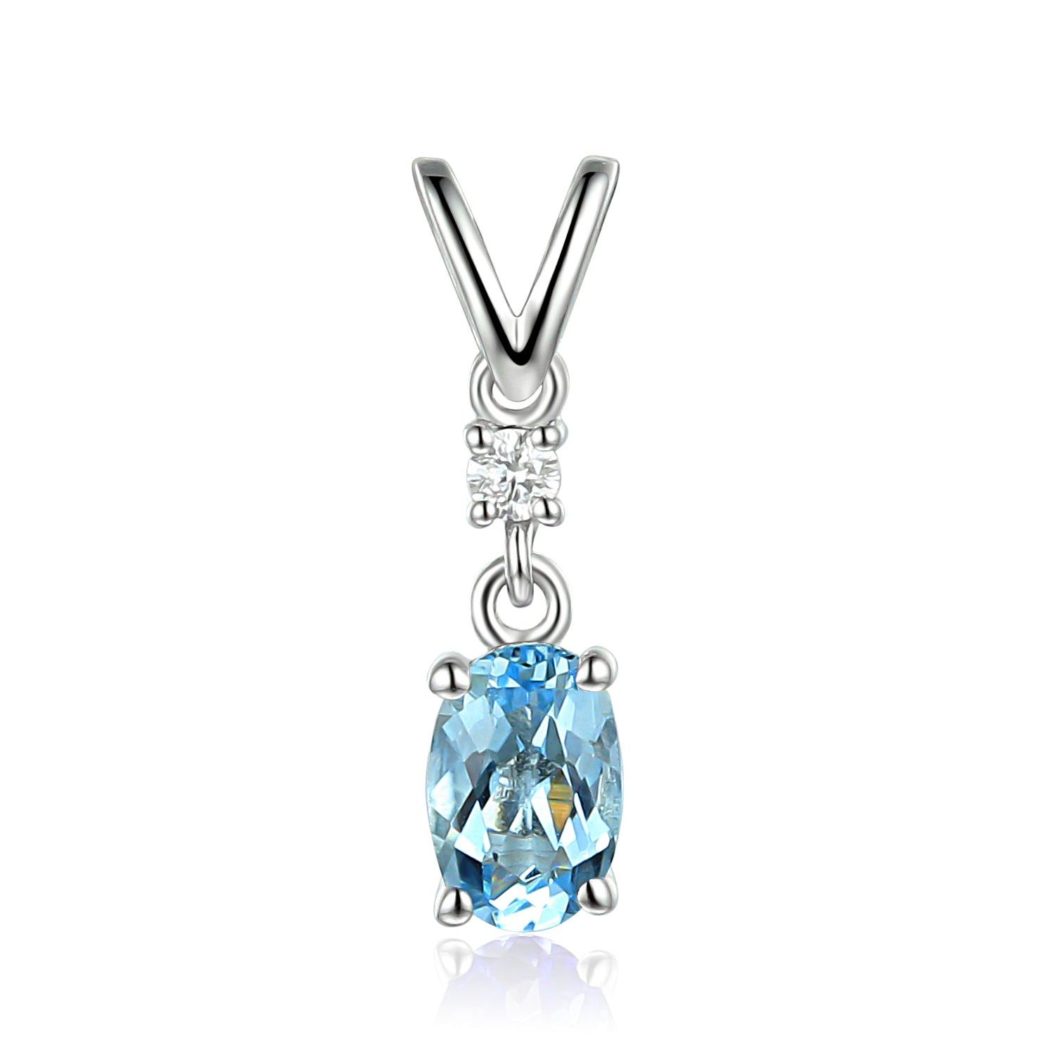 Oval gemstone set in four claw pendant setting with diamond claw set top and split bail to slide onto a chain