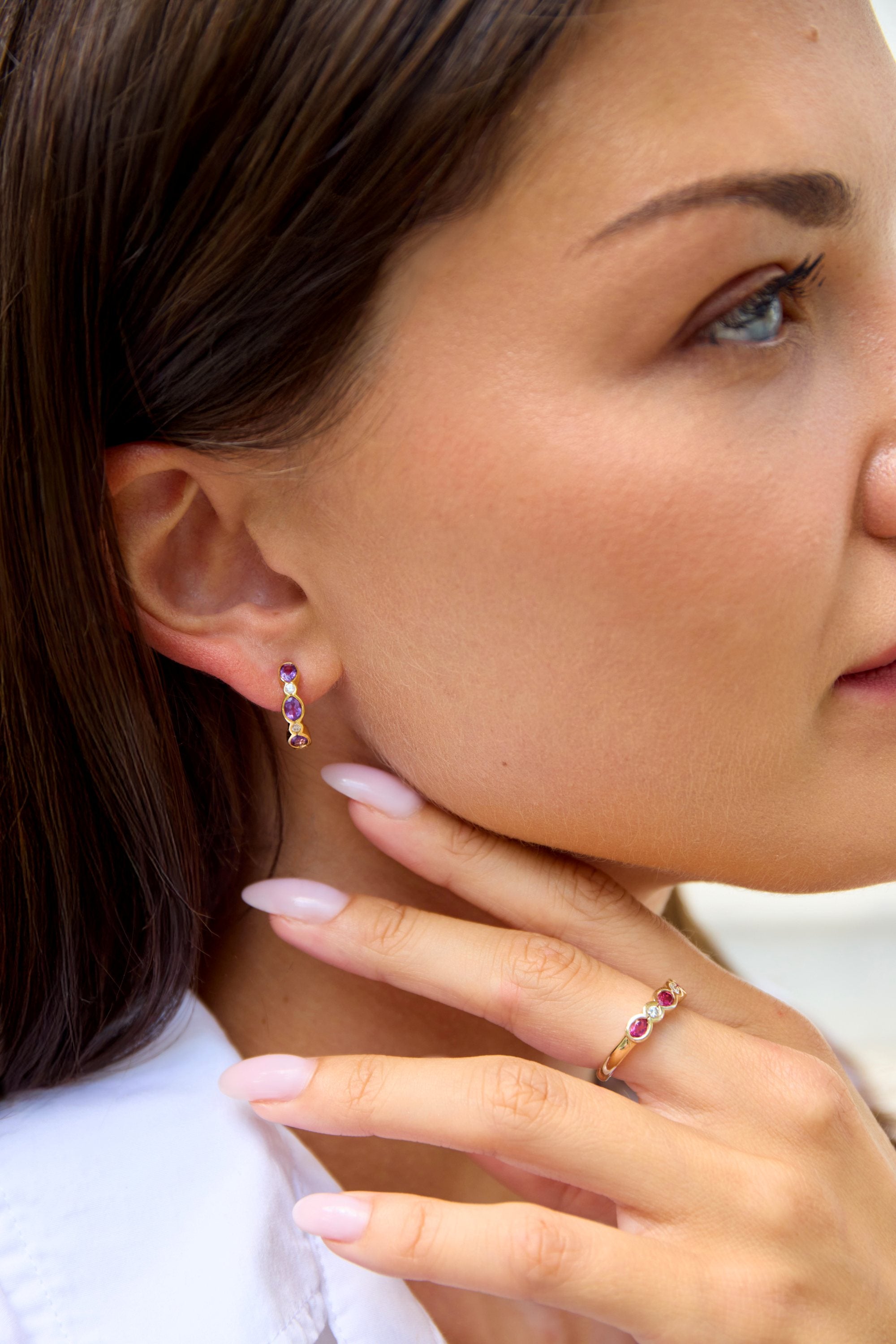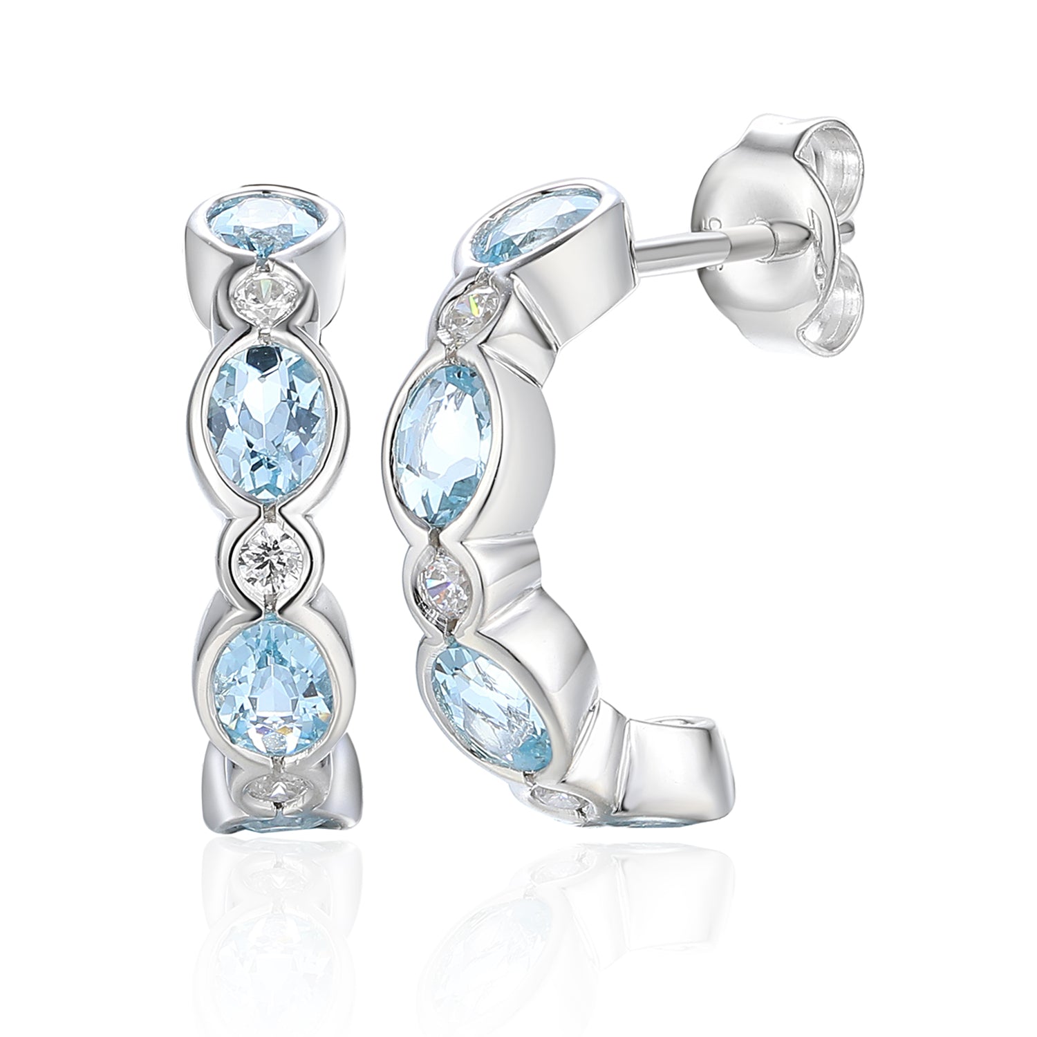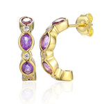 Oval gemstone & diamond gold half hoop earrings, available in 9ct & 18ct.