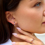 Oval Gemstone & Diamond Half Hoop Earring