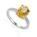 Oval Gemstone Ring with Pave Diamond Shoulders
