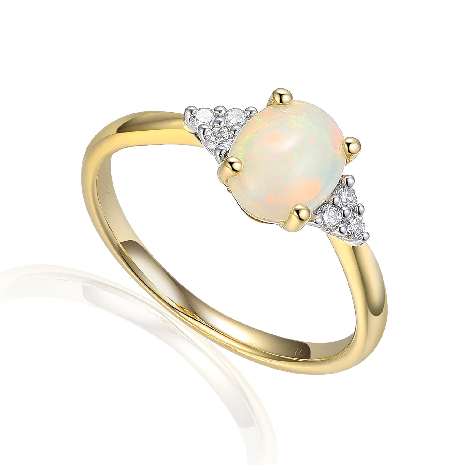 Oval Opal and Diamond Ring with Trefoil Shoulders