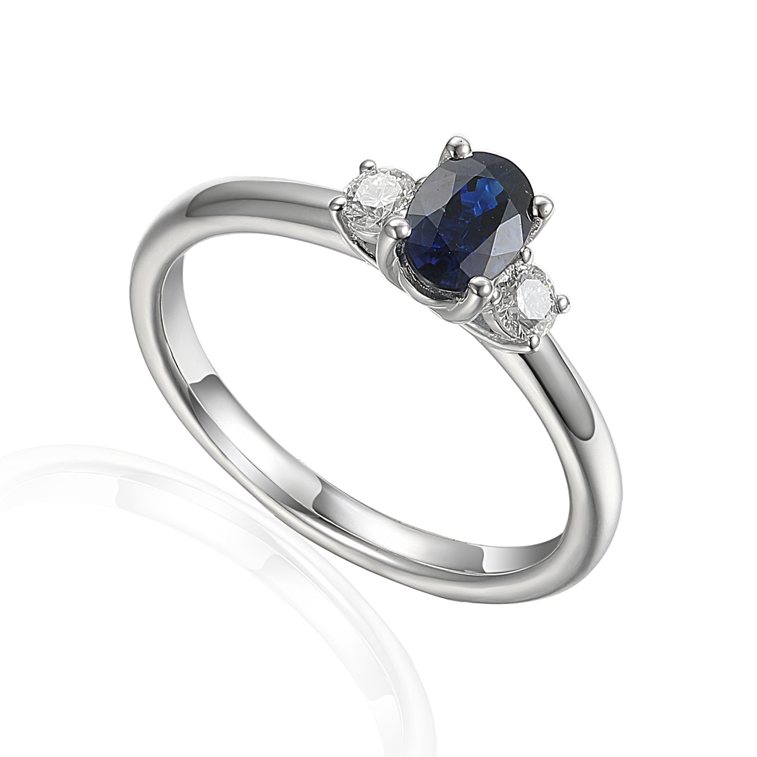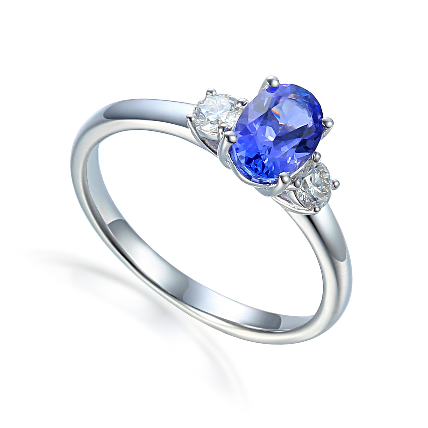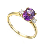 Oval gemstone three stone ring 6x4mm centre stone and diamond side stones