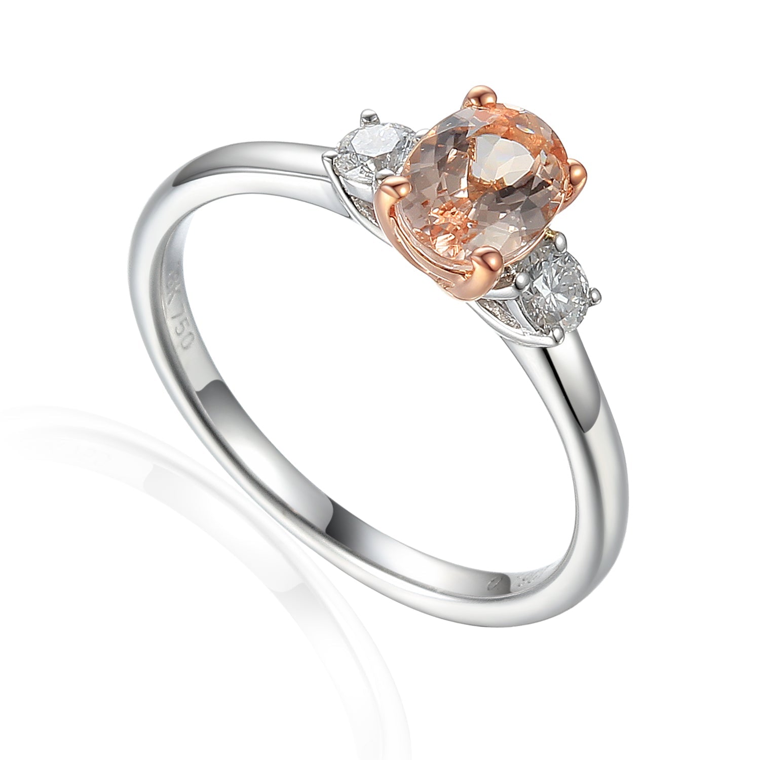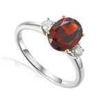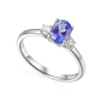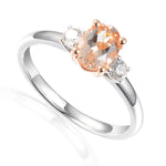 Oval gemstone three stone ring 7x5mm centre stone and diamond side stones