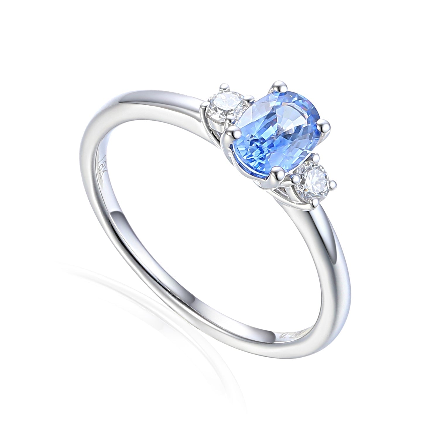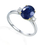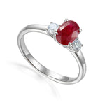 Oval gemstone three stone ring 8x6mm centre stone and diamond side stones