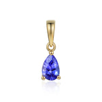 Pear shape gemstone pendant in four claw gold setting with loop for a slide through chain