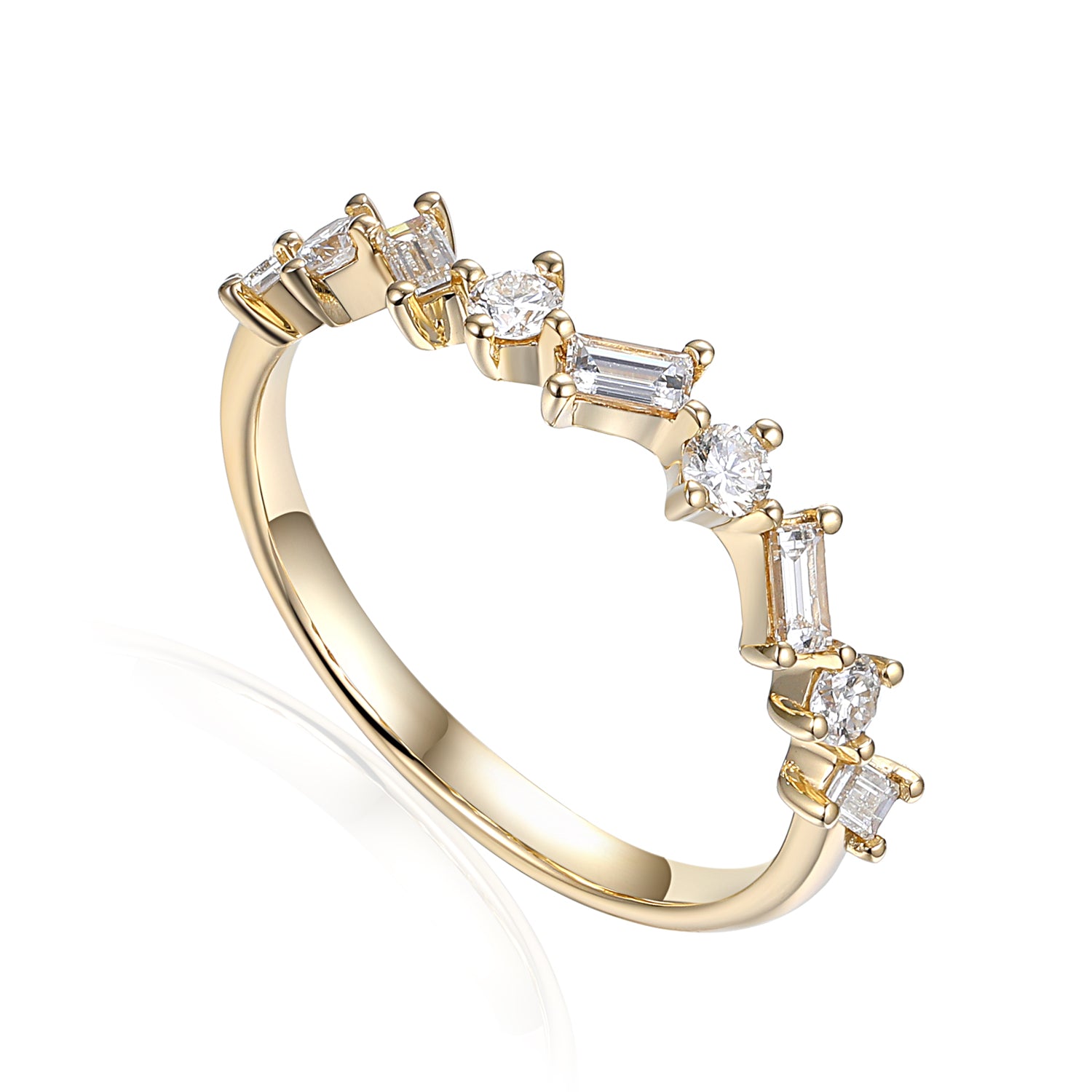 Round and Baguette Zig-Zag Diamond Ring Half Eternity