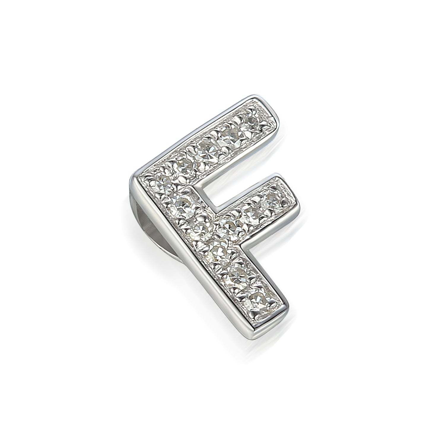 Gold initial F pendant charm, pave set with fine diamonds along the letter