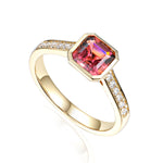 Step Cut Octagon Gemstone & Diamond Rubover Ring