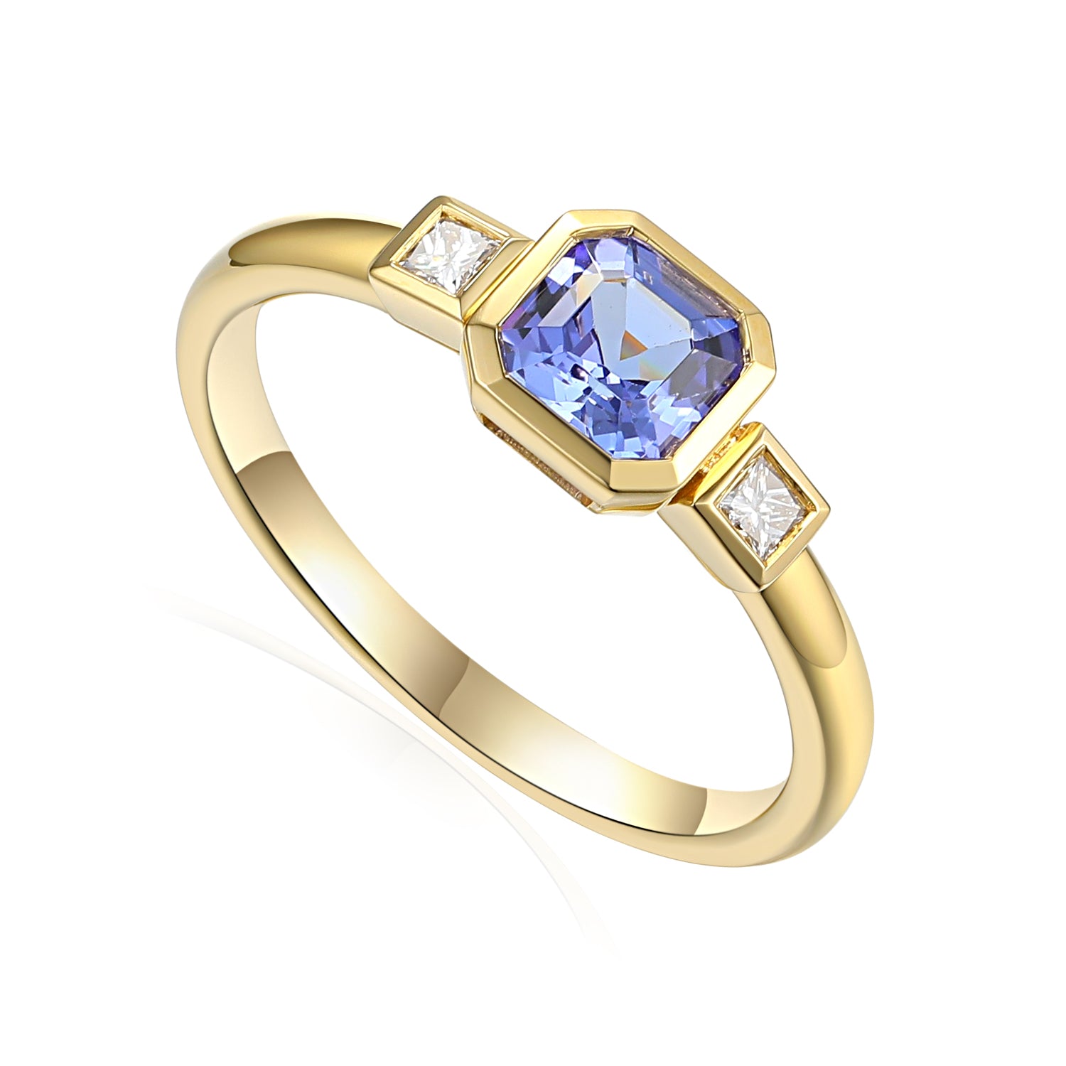 Rubover Three Stone Step Cut Octagon Gemstone Ring