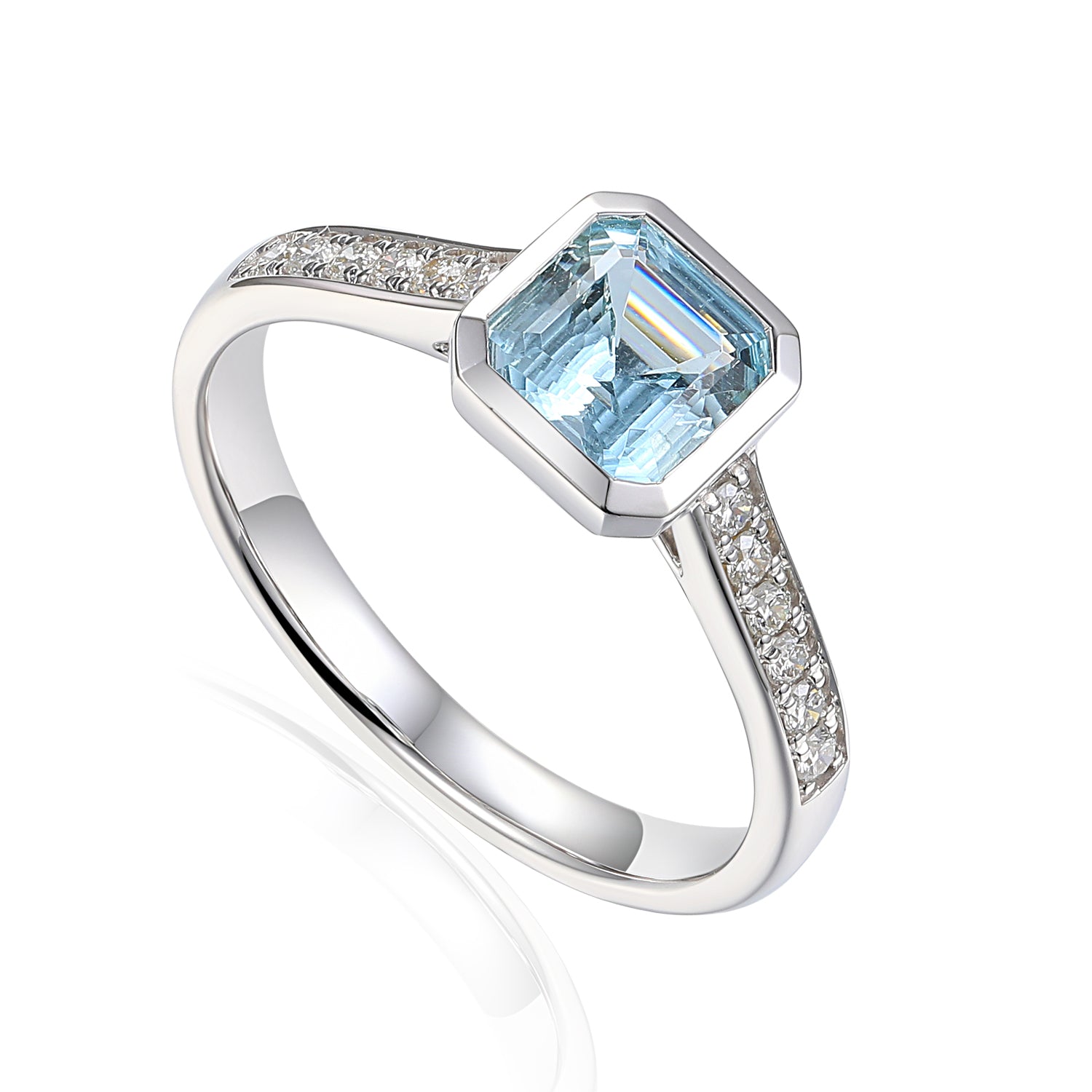 Step Cut Octagon Gemstone & Diamond Rubover Ring
